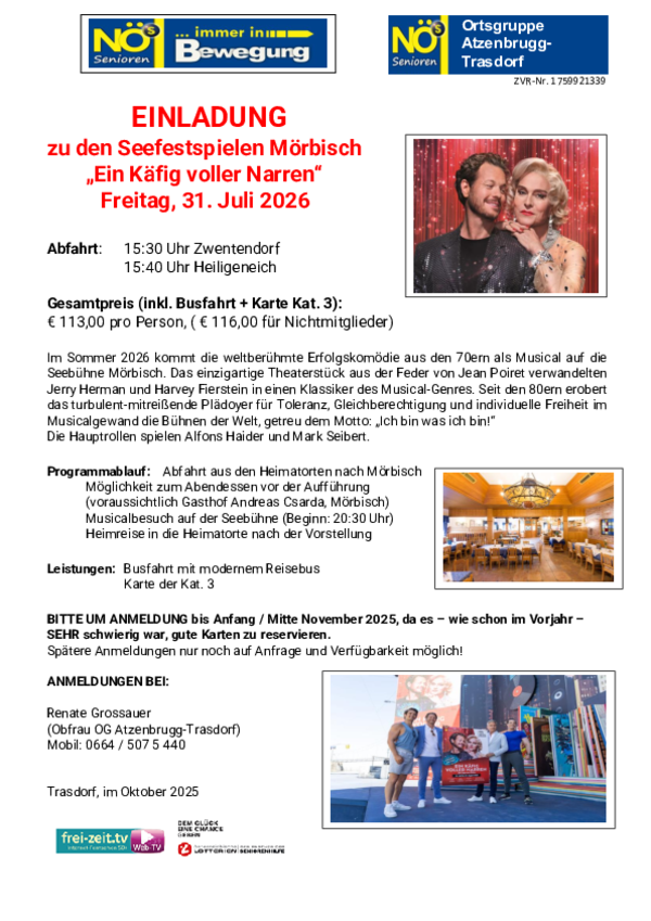 2026 wird auf der Seebühne Mörbisch das Musical "Ein Käfig voller Narren" gespielt.